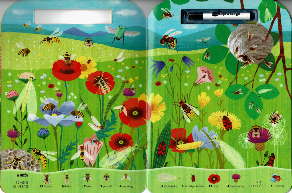 A kötet közös játékra is hív: a szülők és nagyszülők kérdésekkel terelgethetik a felfedezést („Miért gyűlnek a méhek a virág köré?”, „Melyik bogárnak pöttyös a szárnya?”), ezzel gazdagítva a szókincset és ösztönözve a beszélgetést a természetvédelemről is – például miért fontosak a beporzók, és hogyan vigyázzunk az élőhelyeikre.