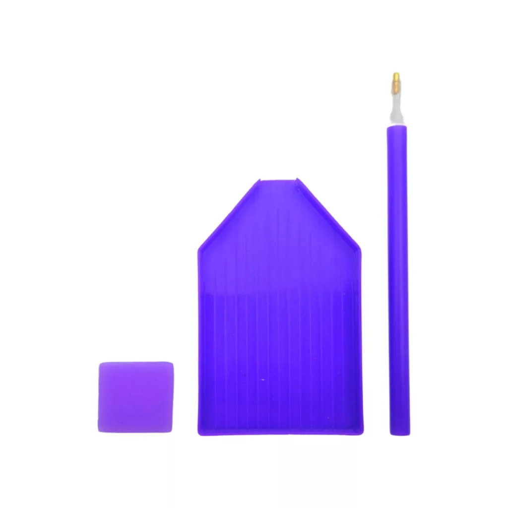A készlet tartalmaz minden szükséges eszközt: vásznat, színes gyémántszemeket és a kirakáshoz szükséges kiegészítőket.