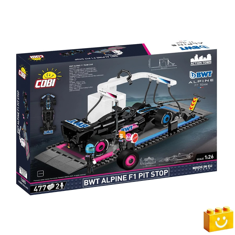 A COBI BWT Alpine F1 Pit Stop egy izgalmas építőjáték, amely a Forma–1 versenyek egyik leglátványosabb pillanatát, a boxkiállást hozza el.