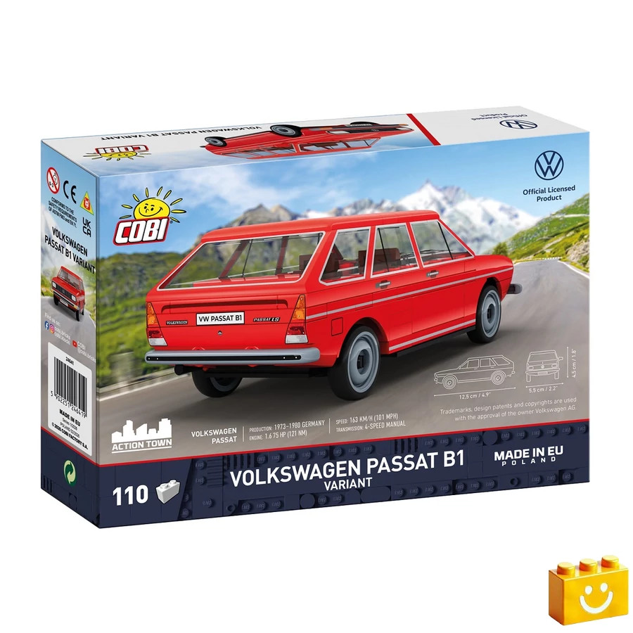 A COBI Volkswagen Passat B1 Variant egy klasszikus autós építőjáték, amely a ’70-es évek egyik meghatározó családi autóját mutatja be.