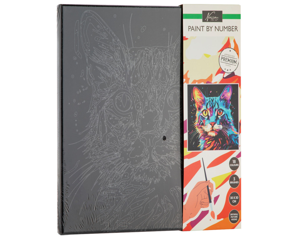 CraftArt Nassau festés számok szerint – fekete vászonra, Macska (30×30 cm)