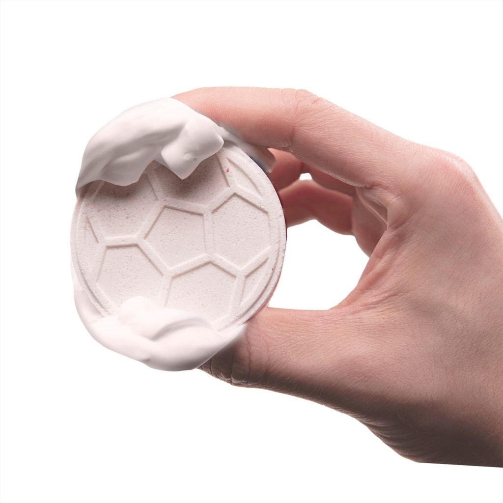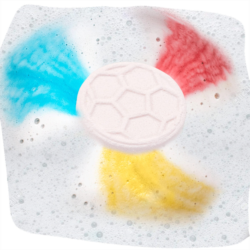 A focilabda formájú fürdőgolyó a meleg vízbe helyezve pezsegni kezd, majd fokozatosan három különböző színű habot képez a víz felszínén, így a fürdés igazi látványos élménnyé válik.