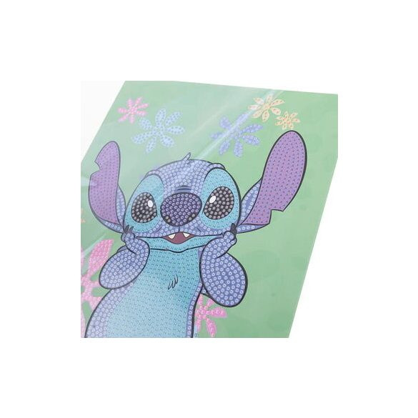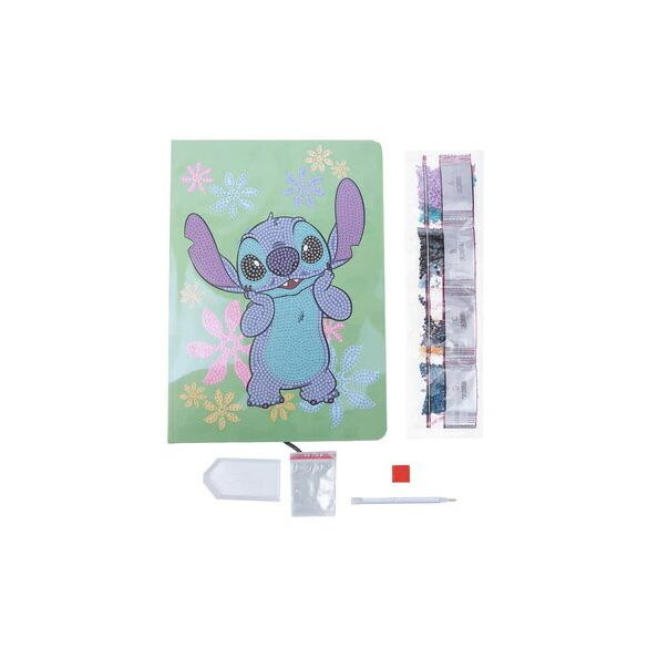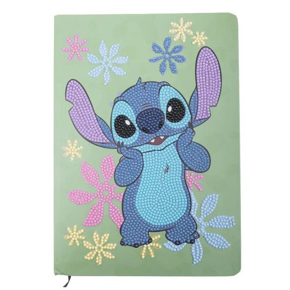 A Lilo & Stitch bájos hőse a ragasztós mintára illesztett kristályokkal kel életre – pihentető, kreatív folyamat, amelynek a végeredménye egy igazán egyedi, ragyogó füzet naplóíráshoz, jegyzeteléshez vagy ajándéknak.