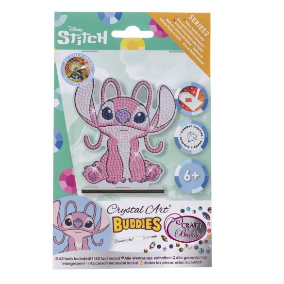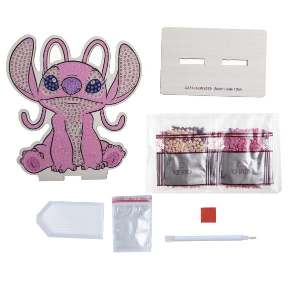 Csillogó Angel figura, a Lilo & Stitch rajongók nagy kedvence! A Crystal Art® gyémántszemes kirakó – Pink Csillagkutya csillogó kövekkel kirakható, fa talppal kiállítható dekoráció.
