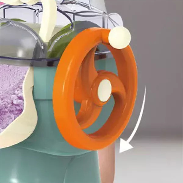 A mechanikus működésnek köszönhetően nincs szükség áramra, így a játék biztonságos és bárhol használható. A folyamat során a gyerekek megfigyelhetik, hogyan válik a folyékony alap sűrű, jeges finomsággá.