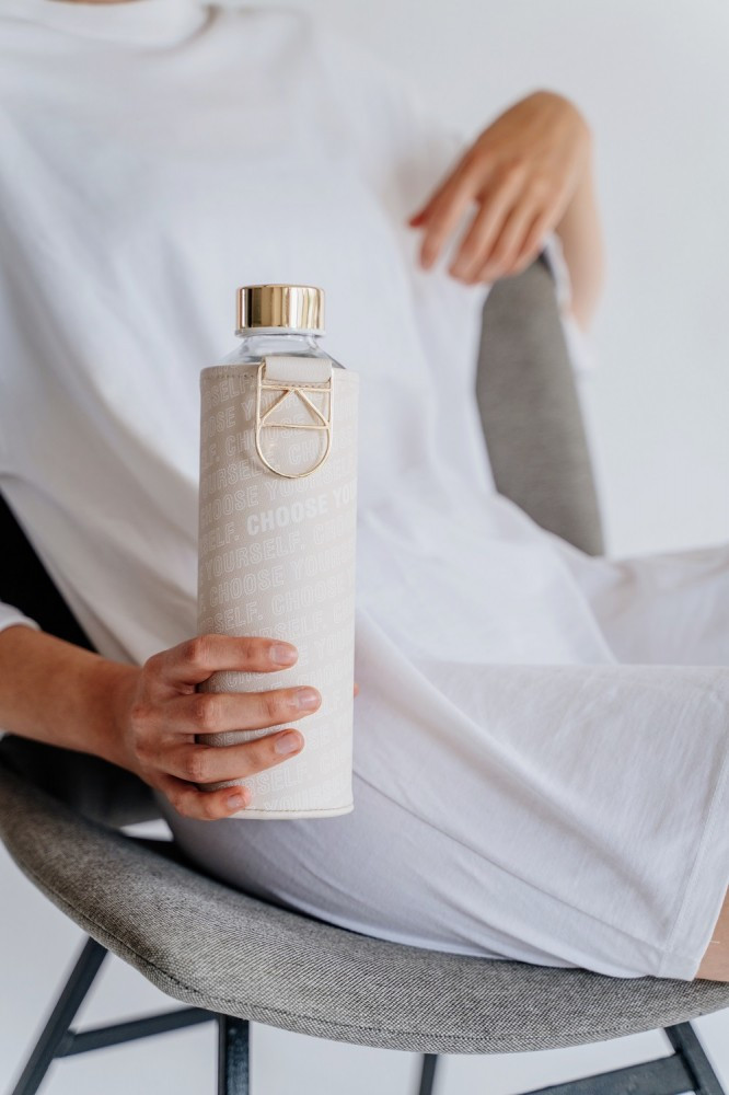 Ez az elegáns üvegpalack a fenntartható életmód jegyében segít csökkenteni a hulladéktermelést, miközben javítja a folyadékfogyasztási szokásokat.