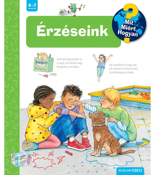 A Ravensburger népszerű Mit? Miért? Hogyan? gyermekkönyvsorozatának 71. kötetét lapozgatva az óvodások és a kisiskolások megtudhatják, honnan jönnek az érzések; miben segítenek nekünk az érzéseink; mi történik, amikor dühösek vagyunk; miért vagyunk szomorúak; ki tud segíteni, ha baj van; milyen érzés, ha szeretnek.