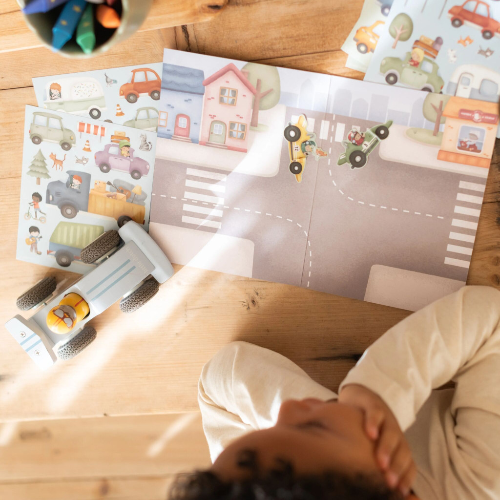 Ragassz, mesélj, alkoss – a Little Dutch matricás füzetben a város pillanatok alatt életre kel!