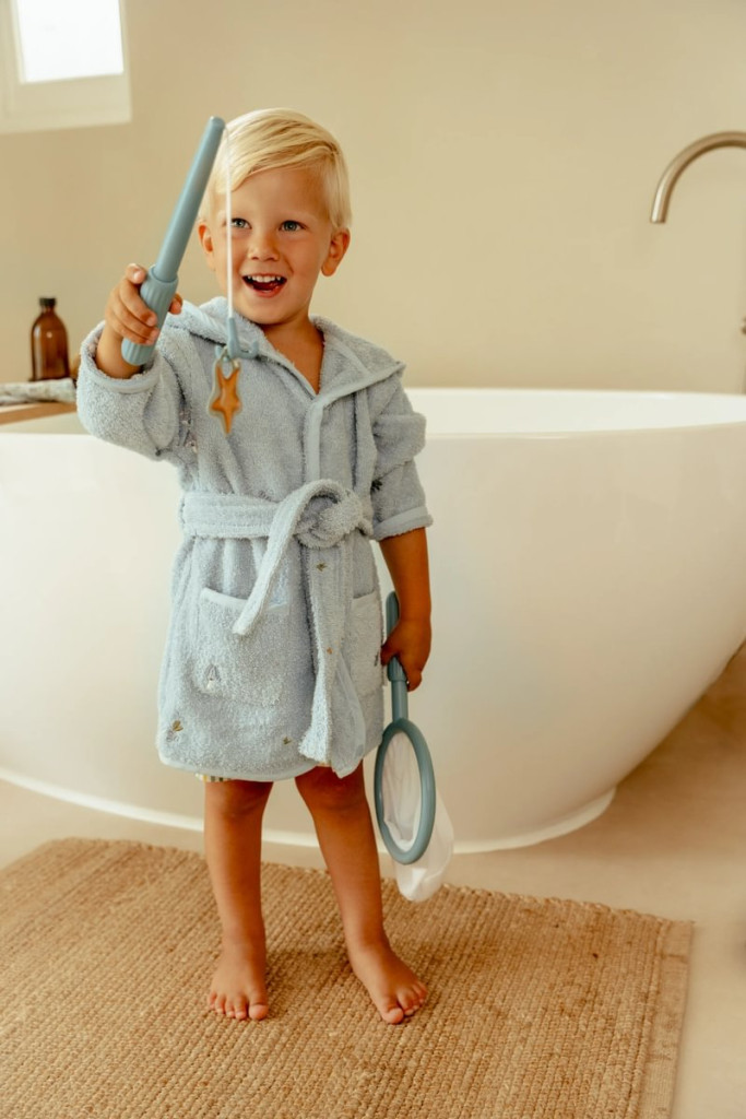 Vidám, kék szett, amely egy horgászbotot, egy merítőhálót és 8 tengeri figurát tartalmaz. A nyelek lecsavarhatók, így könnyen tárolható és utazásra is ideális.