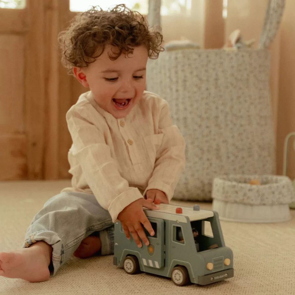 A Little Dutch fából készült rendőrségi furgon tökéletes választás a szerepjátékot kedvelő gyerekek számára. A nyitható ajtajú, rácsos cella lehetővé teszi, hogy a „bűnözők” biztonságosan a járműbe kerüljenek, így a kicsik valósághű, izgalmas jeleneteket játszhatnak el.