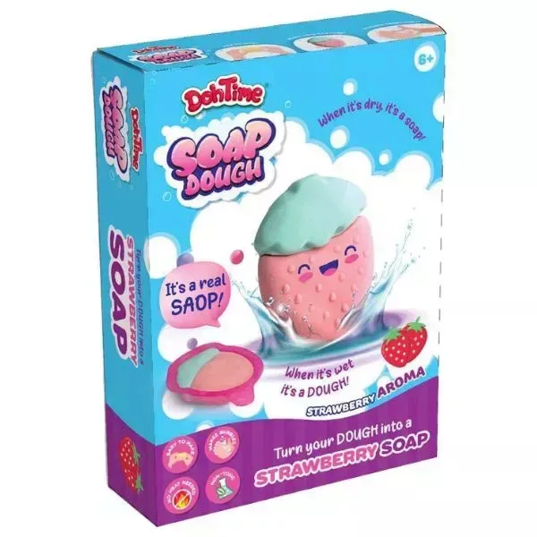 A puha, könnyen formázható masszából eper formákat, bogyókat és egyéb vidám alakzatokat lehet készíteni a mellékelt formázó eszközök segítségével. Az elkészült figurák kb. 5 óra alatt megszáradnak, majd valódi szappanként használhatók.