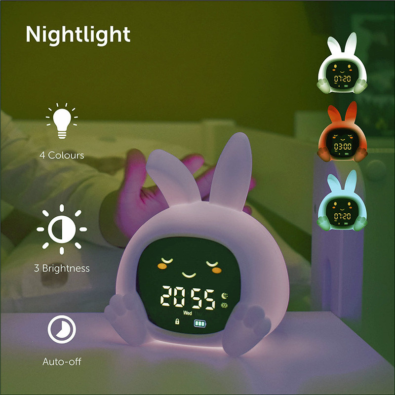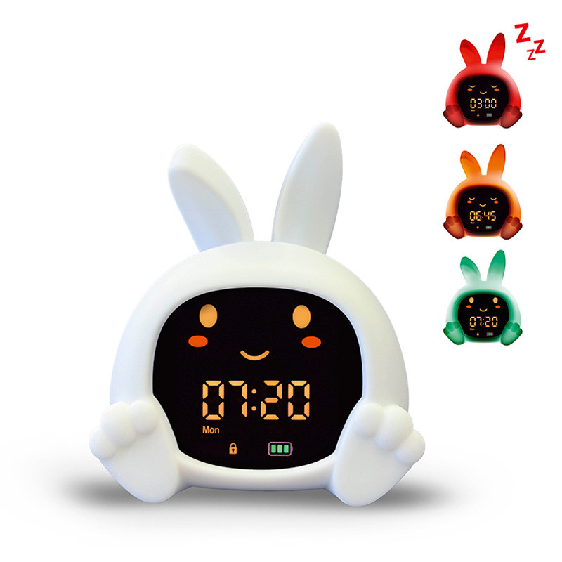 Színjelzések: piros – alvásidő • narancssárga – hamarosan kelés • zöld – fel lehet kelni.