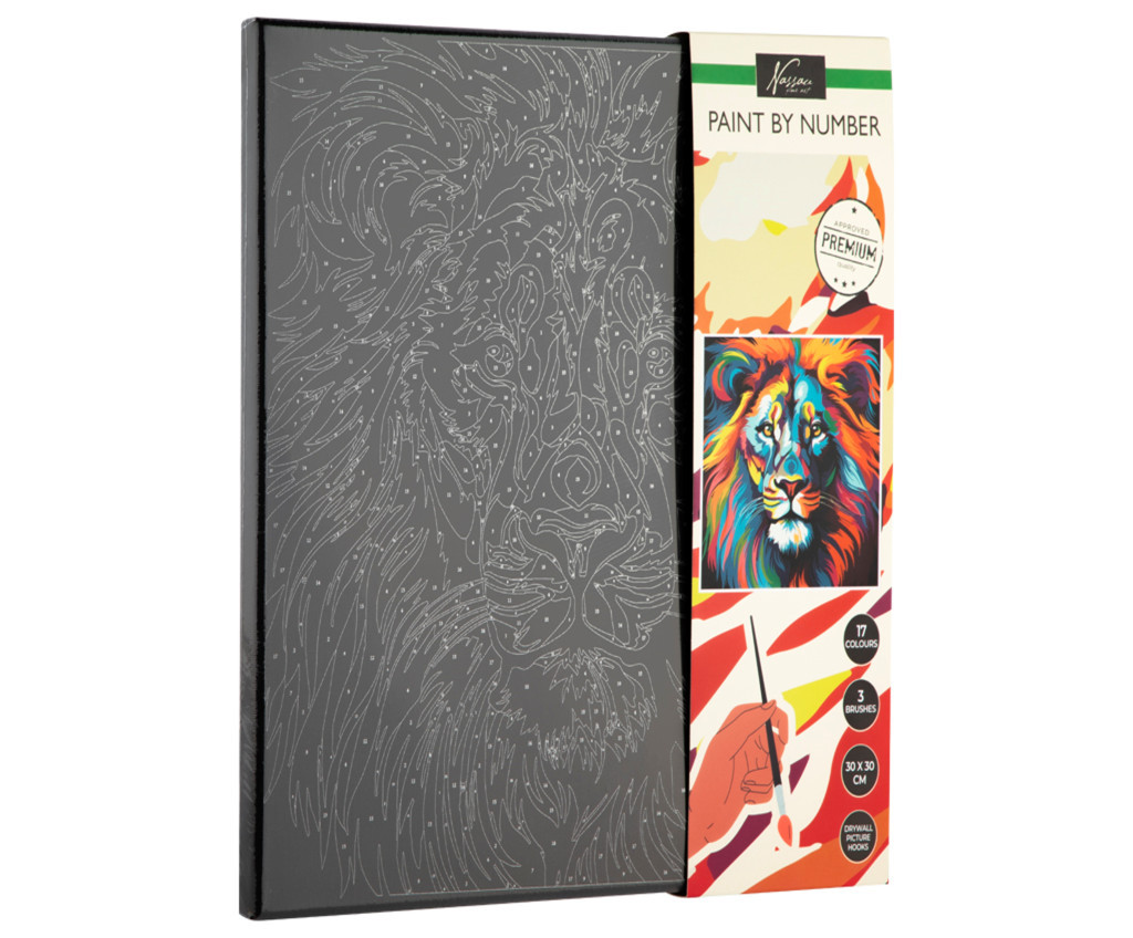 CraftArt Nassau festés számok szerint – fekete vászonra, Oroszlán (30×30 cm)