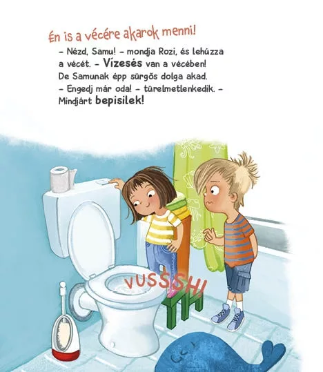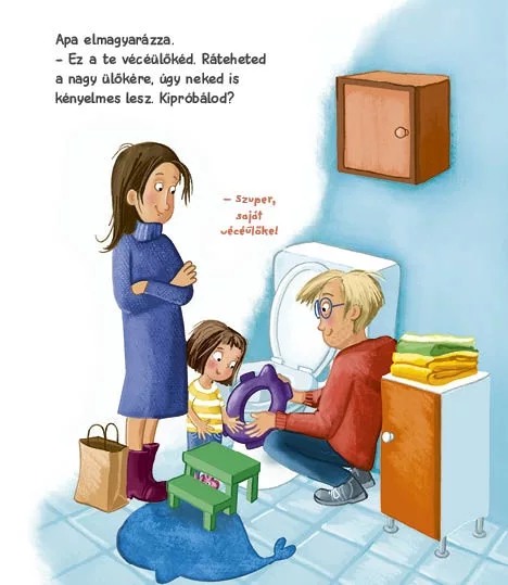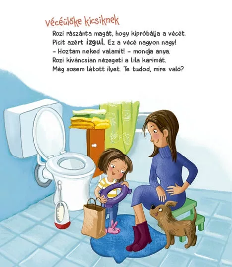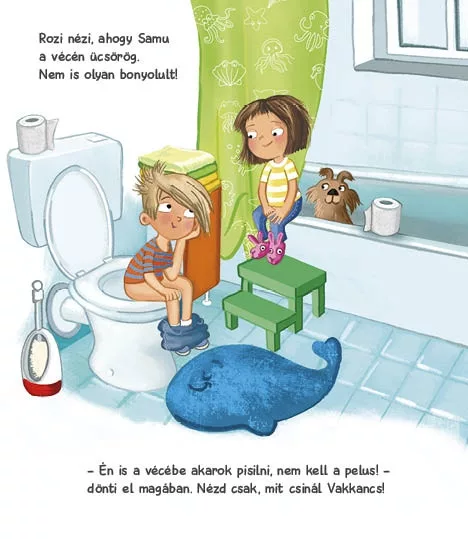 A vécézés olyan egyszerűnek tűnik, de azért gyakorolni kell, és ha közben néha véletlenül beszalad a pisi, akkor sincs baj. A vécéülőkén Rozi biztonságban érzi magát, még a nagyiékhoz is magával viszi. A könyv végére már éjszakára sem kell neki pelus. Milyen jó is együtt pancsolni a kádban, zuhanyzáskor vicces, ahogy felülről folyik a víz a fejünkre. Tudtad, hogy a hajmosás sem olyan vészes? A félősök megleshetik Rozi trükkjét! A fogmosás és kézmosás is fontos!